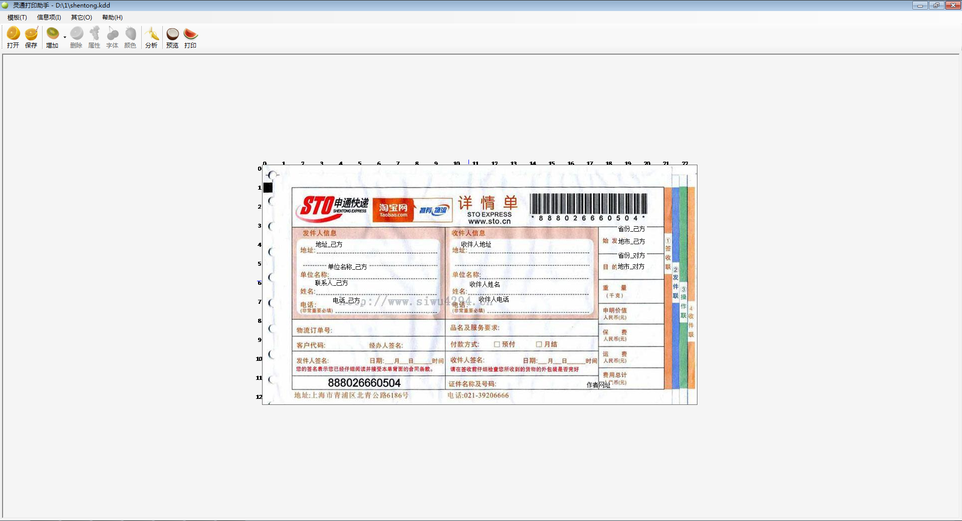 灵通打印助手是一款可以打印快递单据,银行收据的软件,该软件操作简单,商家只需要自由设定信息项字体、颜色,移动它的位置,就可以轻松的进行打印,同时你也可以把模板上传共享,可以在任何时候直接下载共享的打印模板,进行打印,为您在打印中带来了更多的便利。