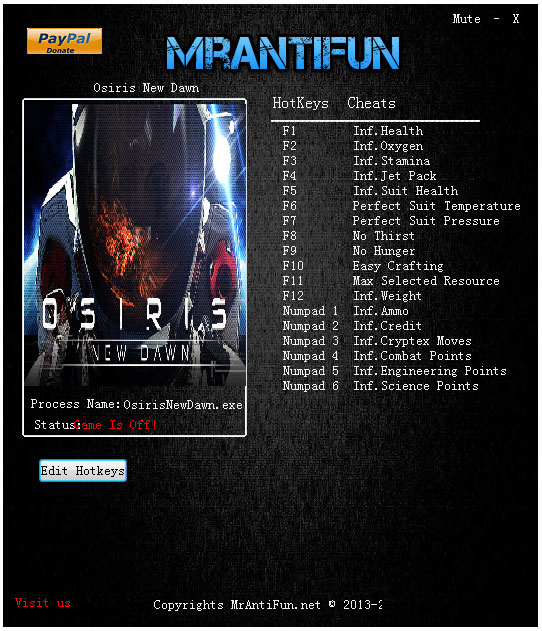 奥西里斯新黎明十八项修改器 V3.0 绿色版