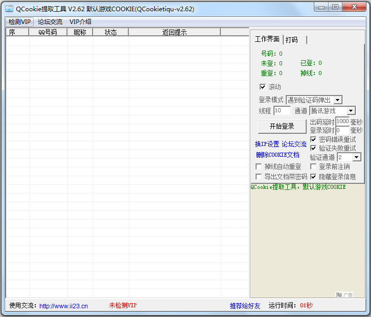 QCookie提取工具,默认游戏COOKIE,支持远程多线打码,自动生在多种COOKIE格式,可手动导出,内置保持在线功能,掉线可自动重登功能等。QCookie提取工具是一款纯辅助工具。