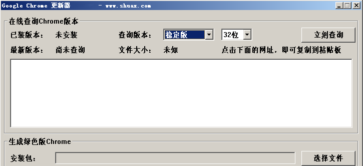 2、Google Chrome 更新器可以方便的获取Chrome最新安装包下载地址,并内嵌最新版GreenChrome,方便打造绿色版可自动更新的Chrome。