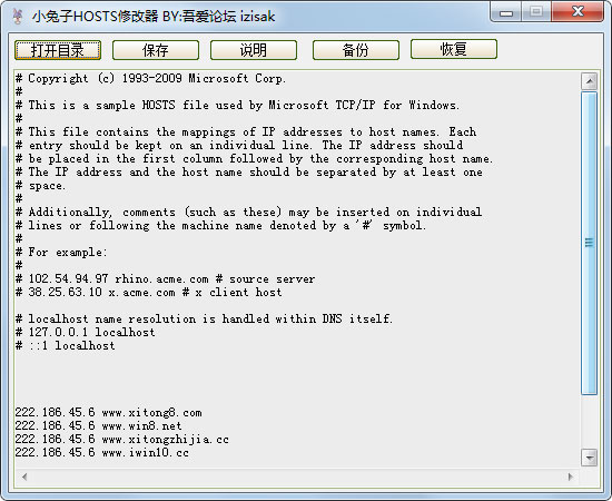 小兔子HOSTS修改器是一款最简单直接的host修改软件,hosts作用就是将一些常用的网址域名与其对应的IP地址建立一个关联“数据库”,在很多地方都用得到!