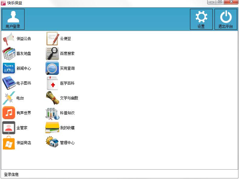 快乐保益是一款为盲人用户打造的多媒体软件,可以读新闻,小说,电台,百科知识等,丰富盲人朋友的知识,还拥有云便签、盲友地盘、百度搜索、新闻中心等功能,还为用户提供了新闻阅读、地图导航、手机读书、手机输入法等一些列功能。
