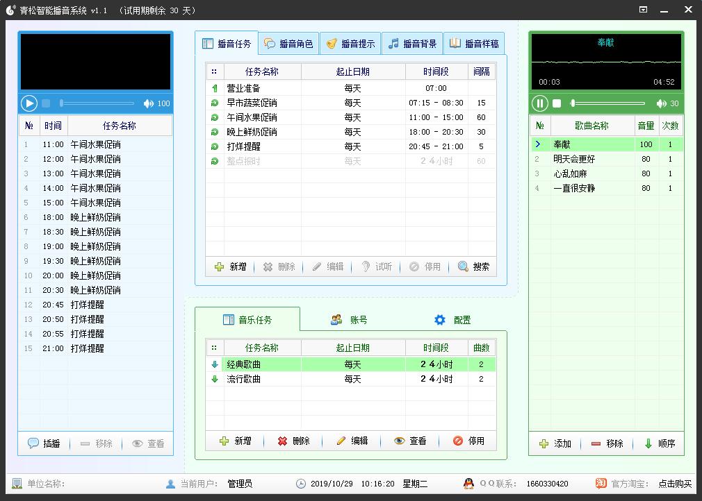 青松智能播音系统是一款适用范围广,免费使用的语音播报软件。这款系统软件可以用来进行宣传,推销,以及学校通知等。总的来说非常实用,需要的用户可以放心下载。