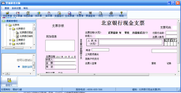 畅捷票据通官方版内置全国32个省市2000余种各大银行财务票据(如支票、进账单、汇票)、快递单、邮政单据、信封等自定义模板供您选择打印。