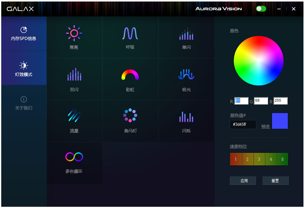 Galax Aurora是影驰官方的内存灯效软件。是支持全品牌主板,并且可不限主板、芯片组,动态调节影驰DDR4极光系列内存的光效系统,给喜欢DIY的用户一个快速控制的电脑灯管特效的一个福利工具。