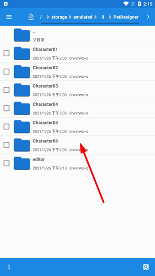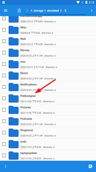 2、然后在手机的安装目录里找到【PetDesigner】文件夹,这个文件是在用户们安装petdesigner后自动生成的。