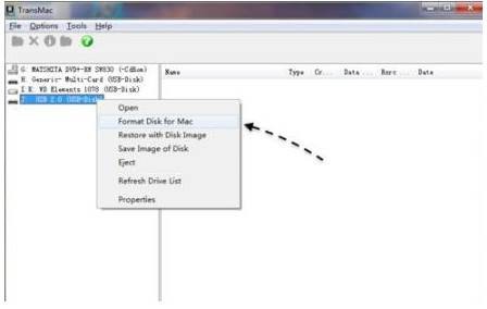 2、插入准备好的U盘,U盘数据要转移,打开TransMac,右键要制作启动盘的U盘名称,选择“Format Disk for Mac”,将u盘格式化成Mac下的格式;