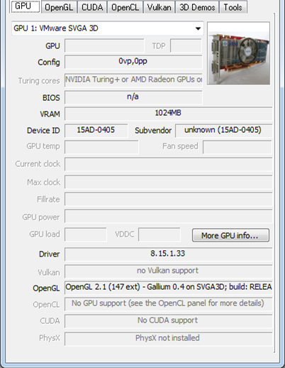 快速的图形视图配置(显卡/GPU类型、数量的视频内存,驱动程序版本);