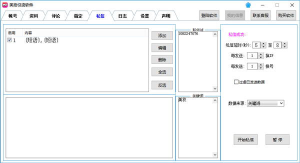 悟空美拍推广助手是一款非常不错的美拍营销软件,软件能够采集频道或关键词的相关视频进行评论,点赞,关注。软件提供了强大的字符替换功能,可以生成各种不同的内容,避免内容重复。还支持采集频道或关键词的相关视频进行评论,点赞,关注,帮助您吸引更多的粉丝。