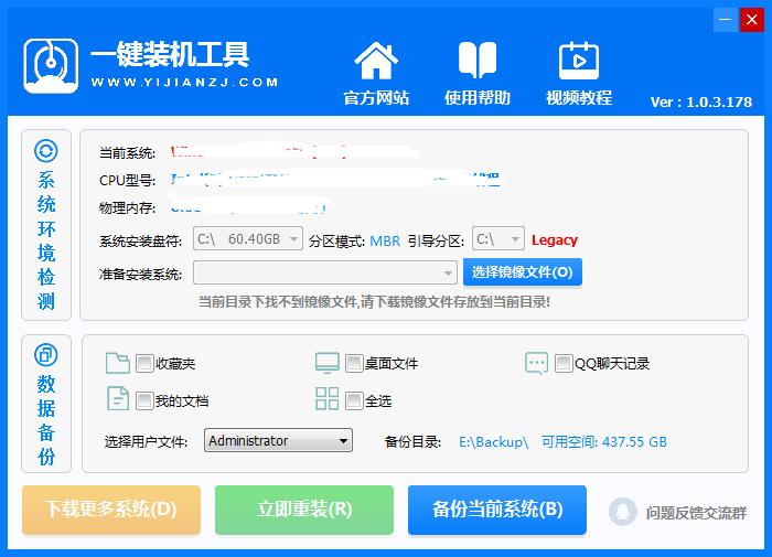 1、下载软件安装之后打开一键装机工具,然后点击“下载更多系统”,进入系统下载安装界面!