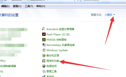 2、控制面板中选择查看方式为小图标并选择程序和功能。