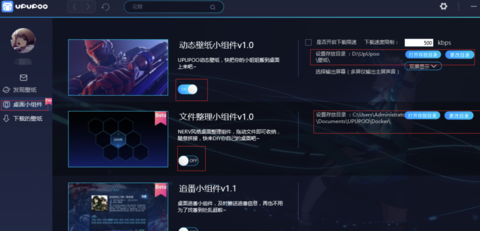 5、桌面的其他组件可以在“桌面小组件”中关闭和开启设置,还可以修改壁纸下载存放的本地路径。