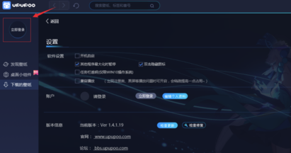 1、打开UPUPOO,后在其界面左上角点击“立即登录”按钮登录upupoo账号,当然也可以使用QQ或者微信等第三方平台登录。不登录的话是没有办法使用壁纸的。