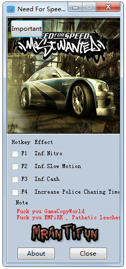 极品飞车17最高通缉四项修改器 V1.0 绿色版