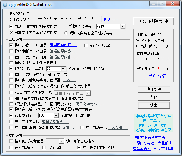 2、实现全自动无人值守接收QQ文件,接收路径可以随意设定。