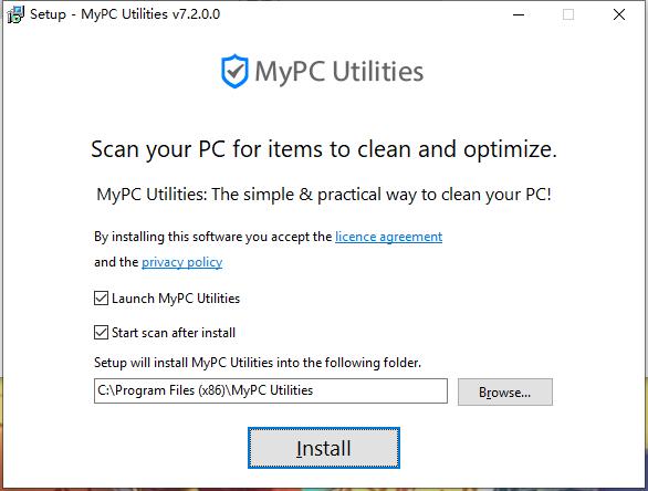 安装向导默认设置的软件默认安装路径为C:Program Files (x86)MyPC Utilities;