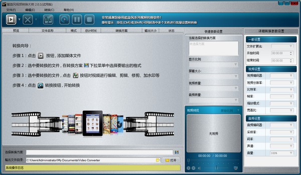 只需四步骤就能完成转换,按钮清晰,界面简单 添加-》选择输出视频格式-》选择转换出的文件要保存的路径-》转换 酷旋风视频格式转换器大师完全可以满足任何视频格式转换水平的用户需要。