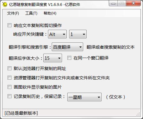 亿愿随意复制翻译搜索工具是一款复制翻译工具,只要启动软件,使用电脑复制功能后,软件可以自动翻译你复制的内容,方便用户查阅资料等,非常的方便,有需要的可以下载。