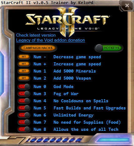 星际争霸2虚空之遗十项修改器 V3.0.5 绿色版