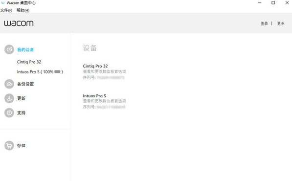 单击 Wacom Desktop Center 屏幕右上角的更多链接。