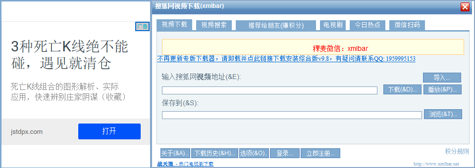 1、如果您需要下载视频,您可以点击搜狐网视频下载(xmlbar)软件顶部的【视频下载】选项,然后输入您要下载视频的网址,您可以点击后面的下载就可了。您需要耐心等待下载完成就可。