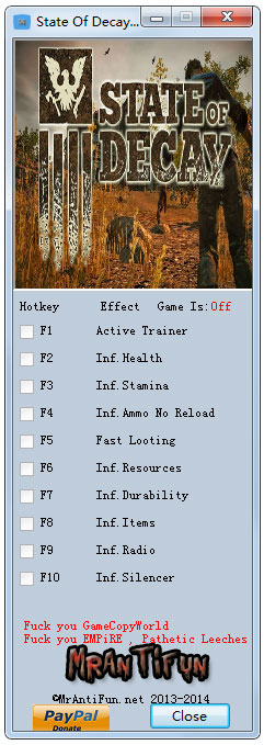 腐烂国度生命线九项修改器 V1.0 绿色版