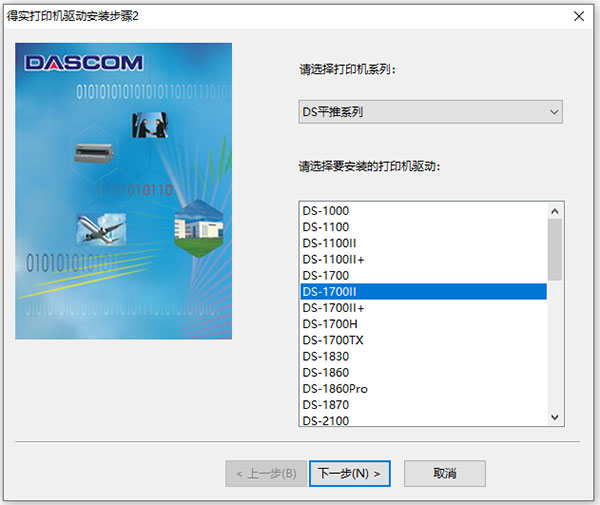 3、双击exe文件,选择ds-1700ii后,再依提示安装;