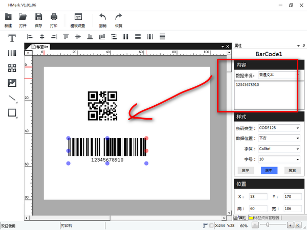 1、支持文本、直线、条码、二维码、日期、图片、图形(圆形、圆角矩形、矩形、椭圆)打印。