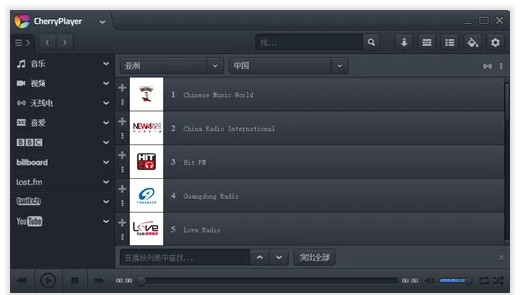 所需的一切已内置在此播放器中。程序界面樱桃播放器的界面非常漂亮、华丽,可爱的樱桃加上神秘的紫色,如果你是个喜欢外表美艳又享受流畅播放功能的播放器,那么你肯定马上就忍不住要下载了!CherryPlayer 可以播放几乎任何类型的音频和视频文件,功能强大。值得一提的是,樱桃播放器也支持流媒体的播放,还有在线点播音视频节目的功能!