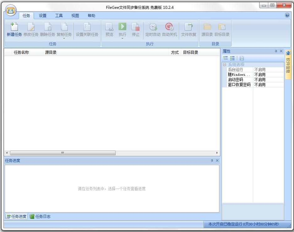 任务设置好之后,点击“执行”就可以开始备份任务了。在任务进度中可以清晰的看到任务执行的进程以及可能出现的问题,执行日志中详细记录每次任务执行时所有文件的操作及操作结果。