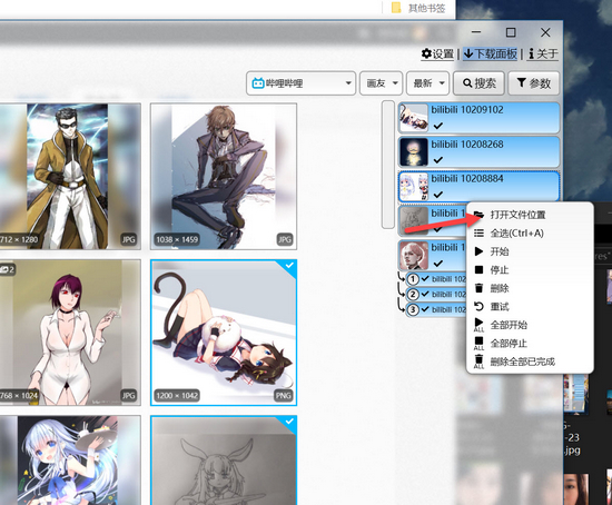增加了页码导航、标签识别、预览图缩放等功能,对搜索参数、过滤条件(分辨率、格式、评级等)进行了整合优化。右键支持更多操作,支持显示各类信息、tag、作者等。