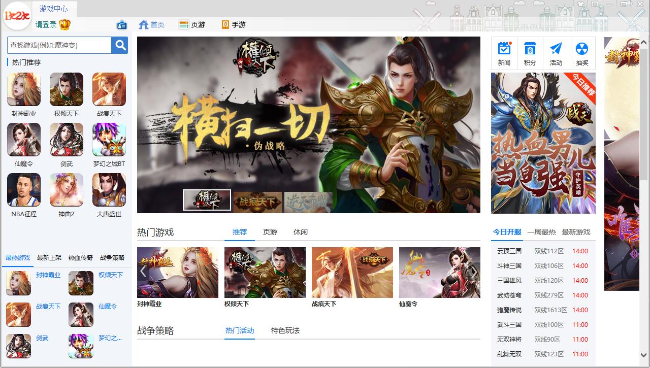 1K2K游戏盒是一款集页游、休闲、小游戏、单机游戏等多种游戏类型与一体的游戏下载平台,其囊括了多达十万的海量游戏资源,您喜欢的游戏都能在这里找到,同时,还为用户提供今日开服功能,您能够在这里查看到游戏最新的开服信息,另外,平台还具备了签到、积分、活动、抽奖等特色功能,让您能够获得更好的游戏体验。