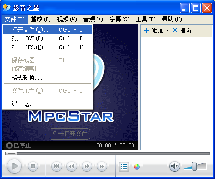 2、通过“添加”按钮,添加一个或者多个视频文件加入到播放列表;