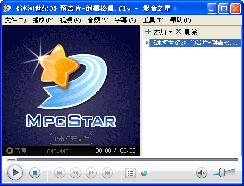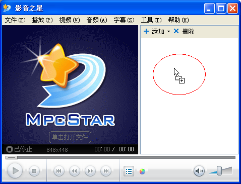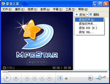 在Windows资源管理器中,选中要播放的一个视频文件,使用鼠标拖放文件到影音之星播放器的视频窗口中,会开始播放该视频。(关于播放控制)