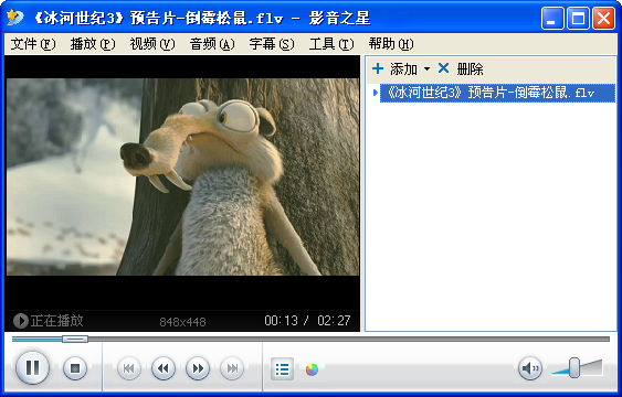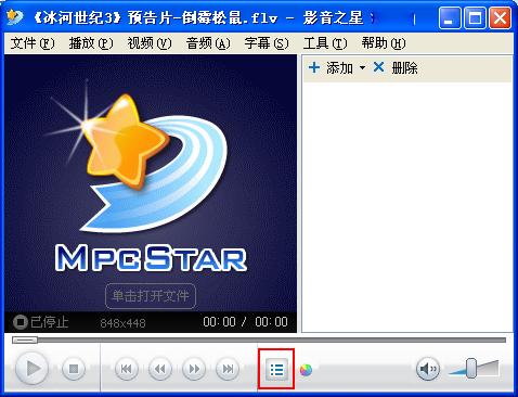 2、刚添加的视频文件,会出现在播放列表中,且立即开始播放视频。(关于播放控制)