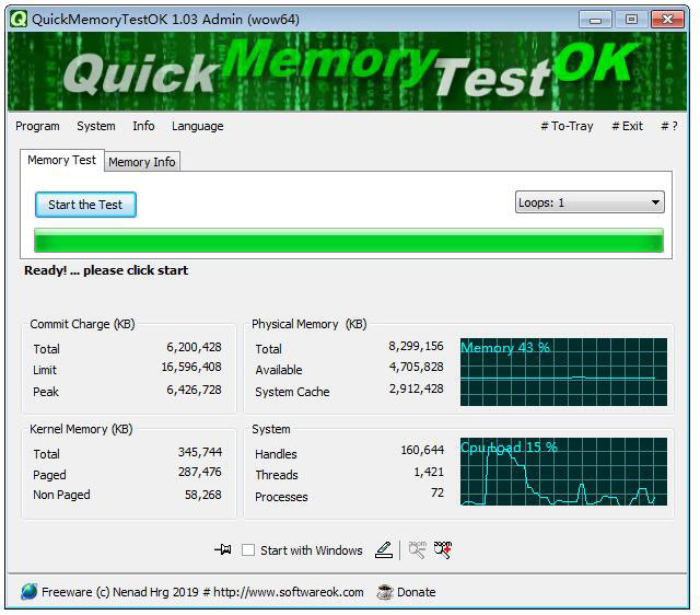 QuickMemoryTestOK(内存测试工具) V1.03 绿色版