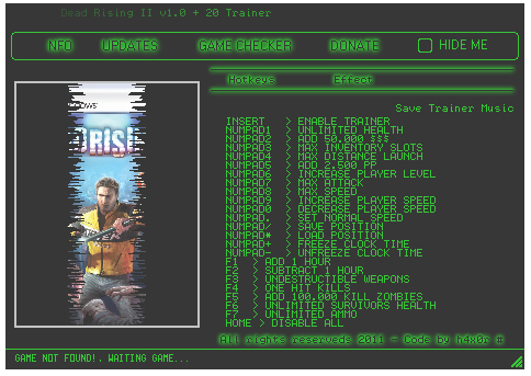 丧尸围城2修改器是该款同名动作冒险恐怖类游戏——《丧尸围城2》的作弊工具。该款丧尸围城2游戏辅助器可进行无限生命、最大射程、最大攻击值、最大速度、无限武器等20项操作设置修改,大大降低游戏难度,让你轻松玩游戏!