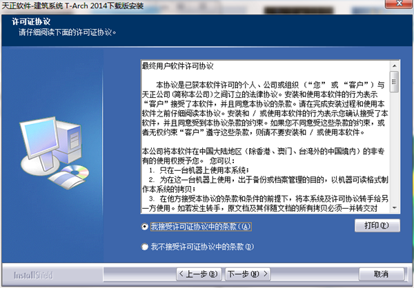 3、双击打开,进入天正建筑T-Arch软件界面,阅读安装许可协议,点击我同意,点击下一步;
