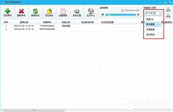 4、可以通过上方按钮进行单号的添加,物流的查询等;