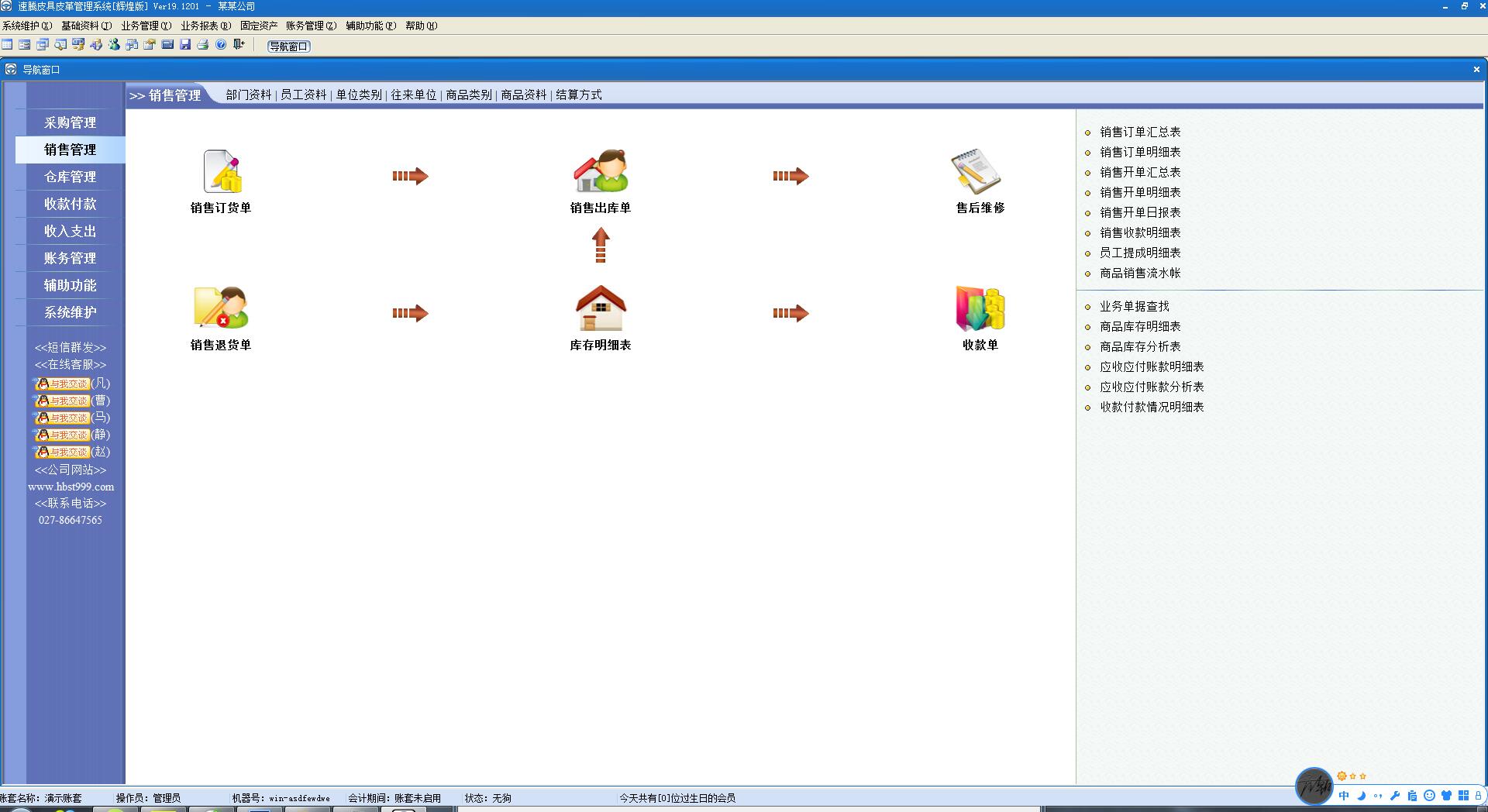 速腾皮具皮革管理系统智能订货、进货入库、进货退回、销售出库、销售退货、报损、报溢、调入、调出、拆零、组装、盘点、借出、借入等功能。