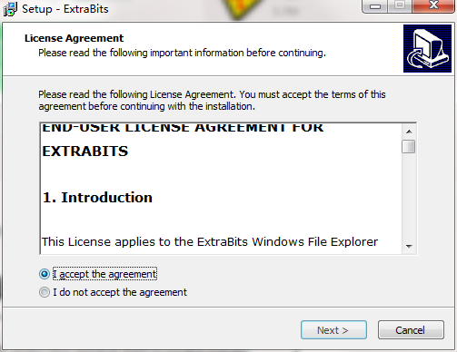 3、双击打开,进入ExtraBits软件界面,阅读安装许可协议,点击我同意,点击下一步;