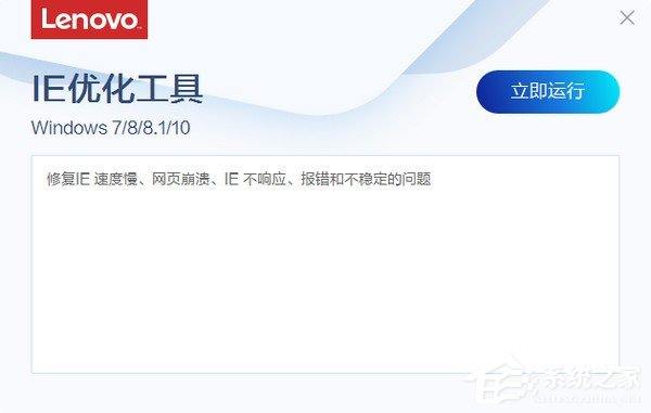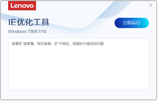 联想IE优化工具,一款能够帮助用户解决IE浏览器一些常见问题,可以修复IE速度慢、网页崩溃、IE不响应、报错和不稳定的问题,是操作很简单而且功能也很丰富的浏览器优化工具。